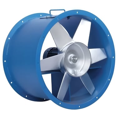 Description: Propeller-type fan encased in a cylindrical GI duct or housing. The GI duct enhances structural integrity and allows for easy integration into ductwork.